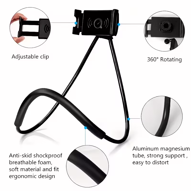 تخيل كده: قاعد في السرير، أو على الكنبة، أو حتى في الشغل، وموبايلك ثابت قدامك، على أي زاوية تحبها، من غير ما تكلّف نفسك أو تحرك كل ساعتين. ده هو بالضبط اللي بيعمله حامل الموبايل ده.